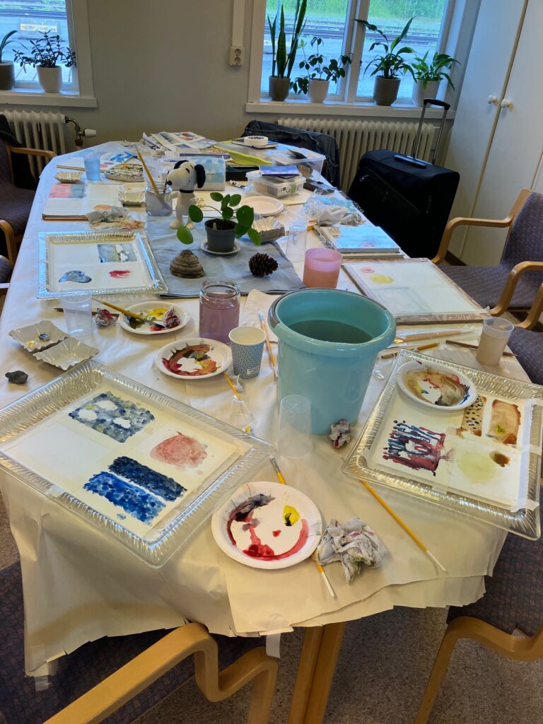 Under dagen fick besökarna prova på akvarellmålning, nåltovning, knapptillverkning och måla stenar. Några besökare kom endast för en fika och se på samlingsutställningen.