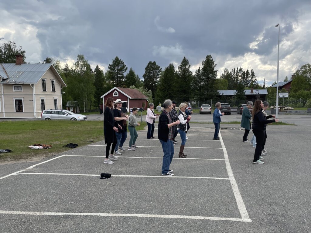 Under våren har en grupp glada kvinnor träffats en gång/vecka och lärt sig Line Dance med kursledaren Katie, på tisdagskvällen hade gruppen en uppvisning på Coops parkering. Det blev en trevlig tillställning där även publiken bjöds in att lära sig en dans.